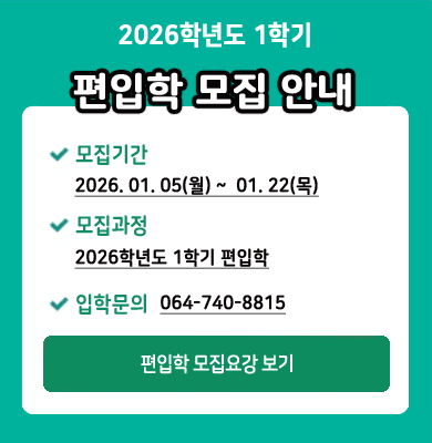 2026학년도 1학기 제주관광대학교 편입학전형 모집공고 안내
